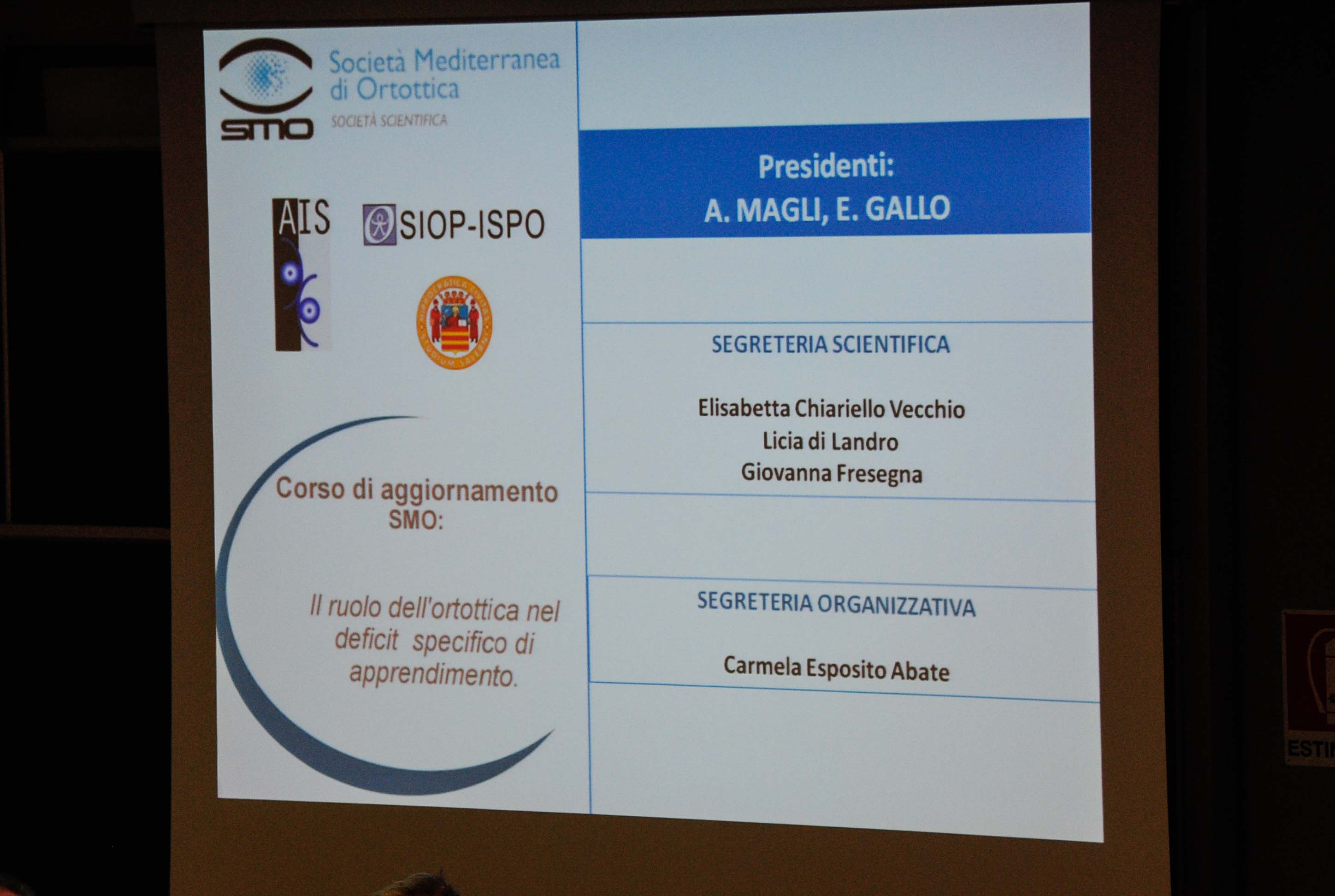 Corso di aggiornamento SMO ”il ruolo dell’ortottica nel deficit specifico di apprendimento” , 19 Marzo 2016 – Salerno.